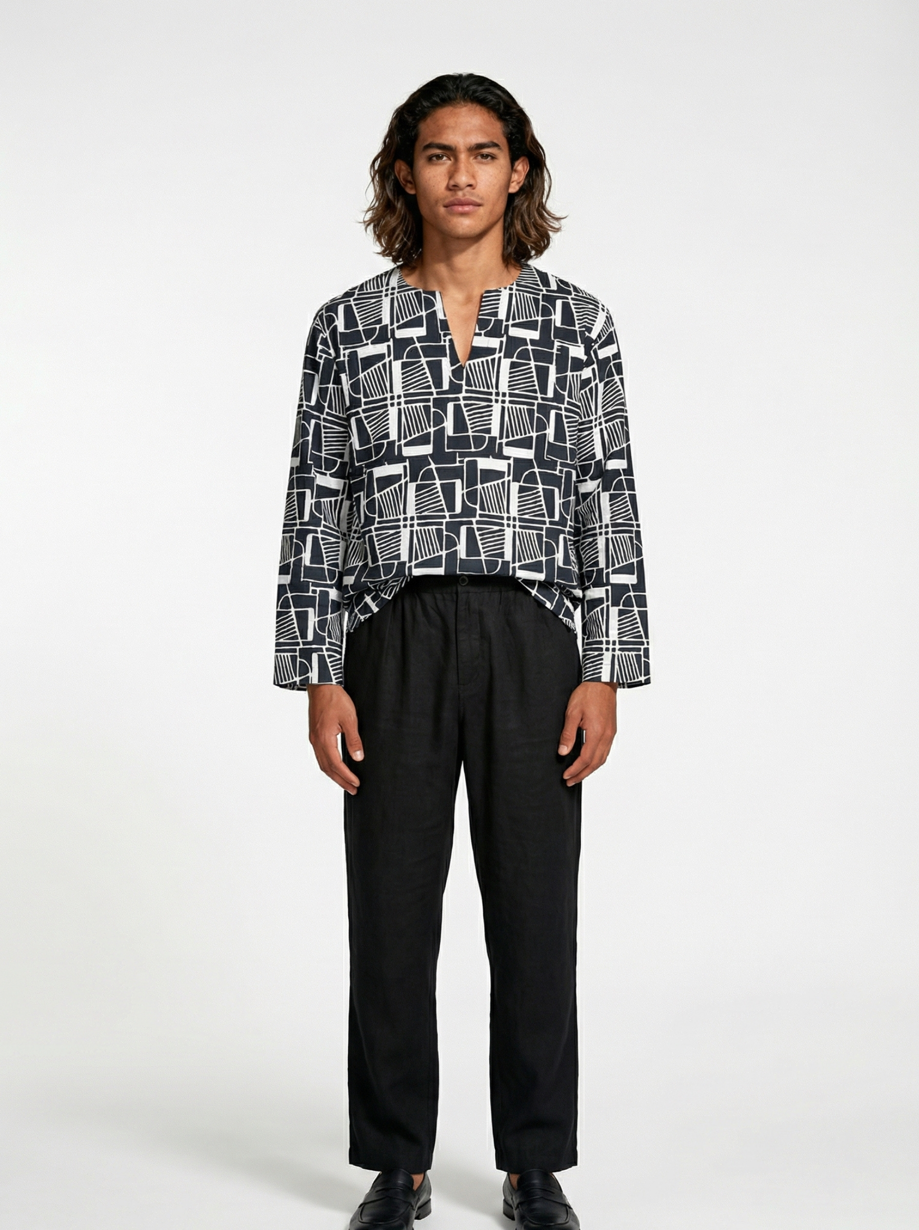 This is a long-sleeve Baju Melayu top made using batikTEKTURA’s original batik fabrics that are produced in Selangor, using batik terap (handblocked) techniques. Only one size is available for this shirt, L, which can fit L to XL.