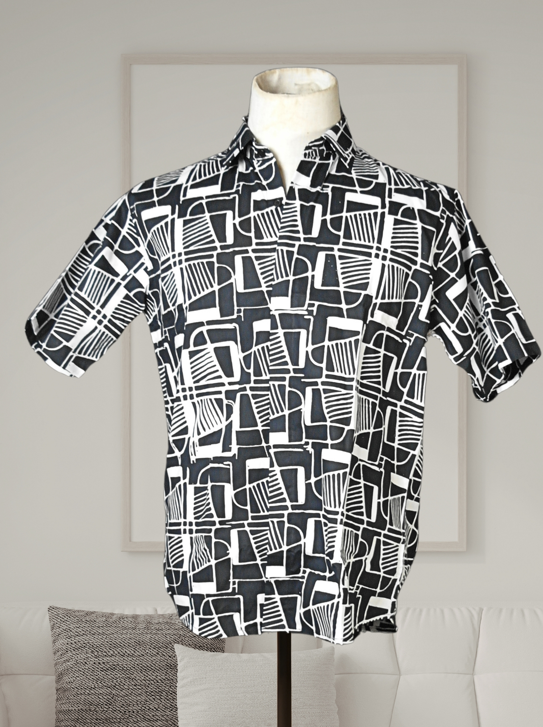 This is a short-sleeved men’s shirt made using batikTEKTURA’s original batik fabrics that are produced in Selangor, using batik terap (handblocked) techniques. Stay cool and comfy in this 100% cotton shirt.