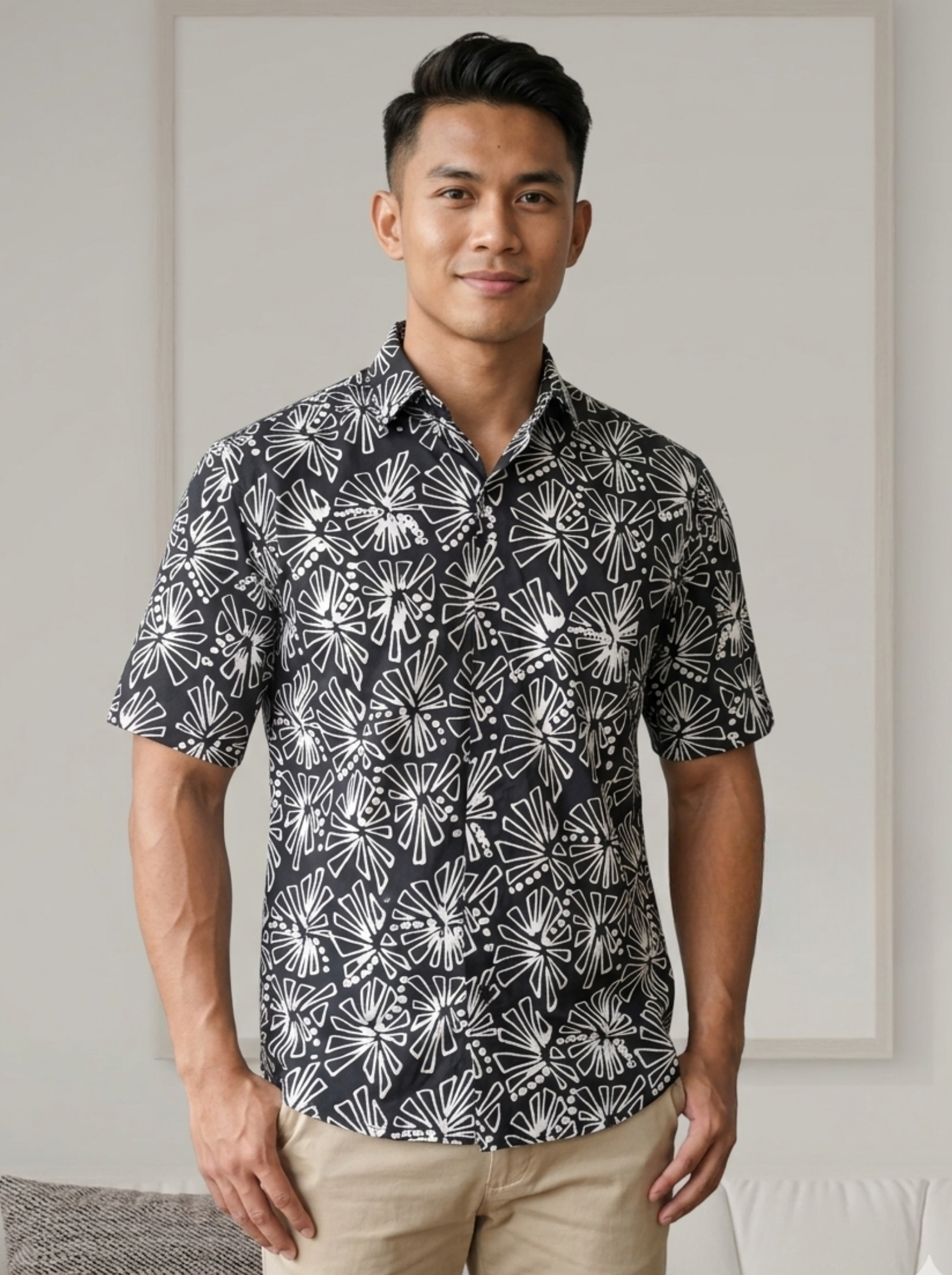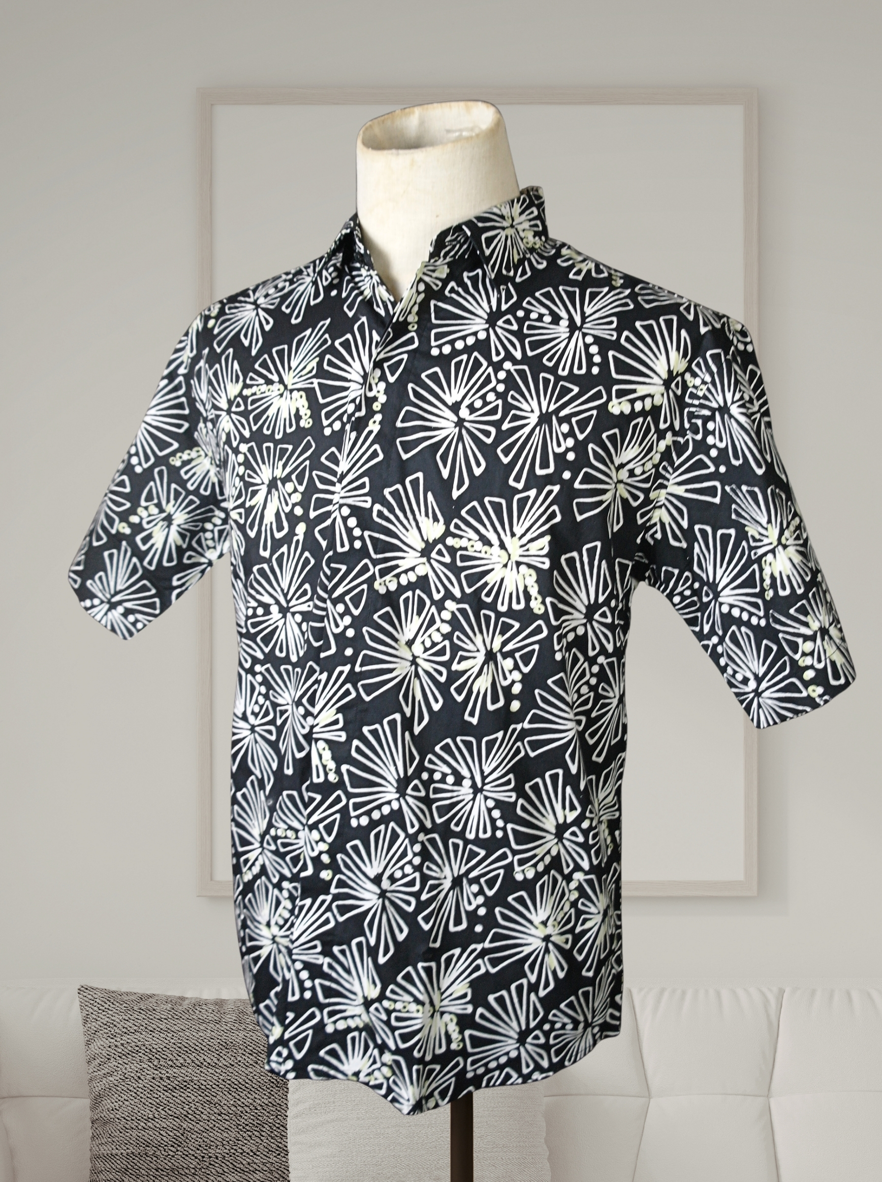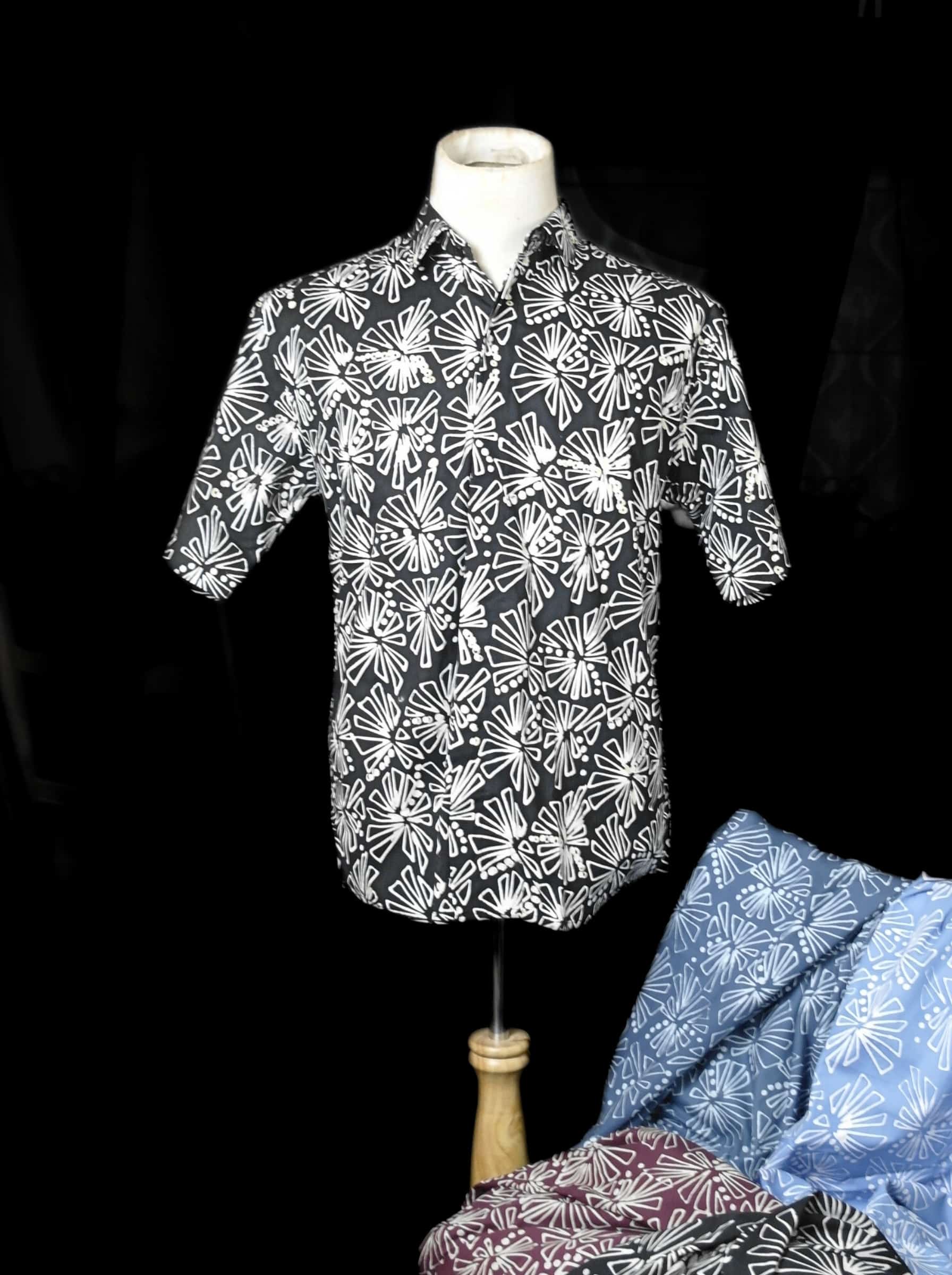 This is a short-sleeved men’s shirt made using batikTEKTURA’s original batik fabrics that are produced in Selangor, using batik terap (handblocked) techniques. Stay cool and comfy in this 100% cotton shirt.